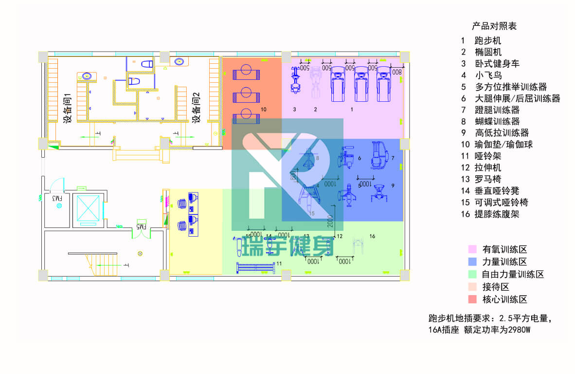 1.有氧区域 :跑步机 、椭圆机、健身车;